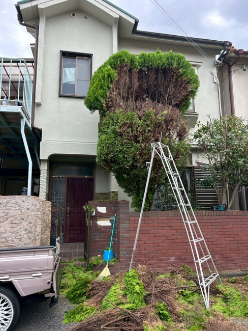 2階の窓を覆うほどに成長し、日当たりや防犯面が心配な状態でした。