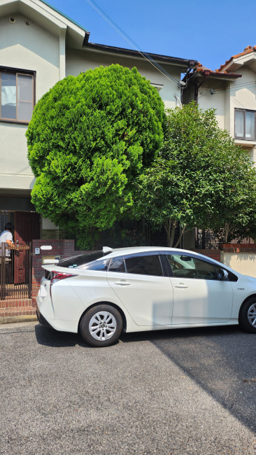 高く伸びすぎた木は、強風時の危険や窓への接触リスクがあります。今回は2階の窓が隠れない高さまでしっかり剪定。ただ短くするだけでなく、木の健康を損なわないよう専門的な視点で枝を落としました。