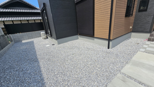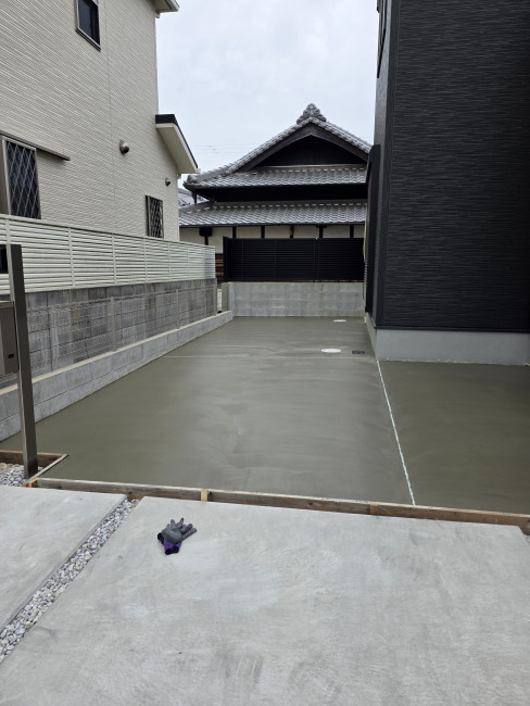 砂利敷きの場合、どうしても隙間から雑草が生えてきたり、砂利が散らばったりして管理が大変です。コンクリートで固めることで、掃き掃除も楽になり、日々のお手入れの負担を大幅に軽減しました。