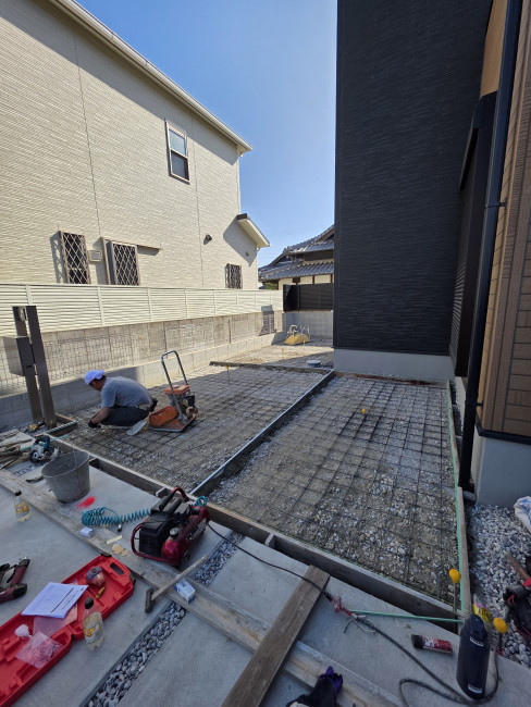 | 主な作業内容 | 既存砂利撤去、残土搬出、砕石敷き、ワイヤーメッシュ、生コン打設 |