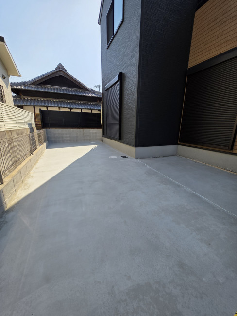 フラットで綺麗なコンクリート面に!三輪車やプール遊びも楽しめる空間に。