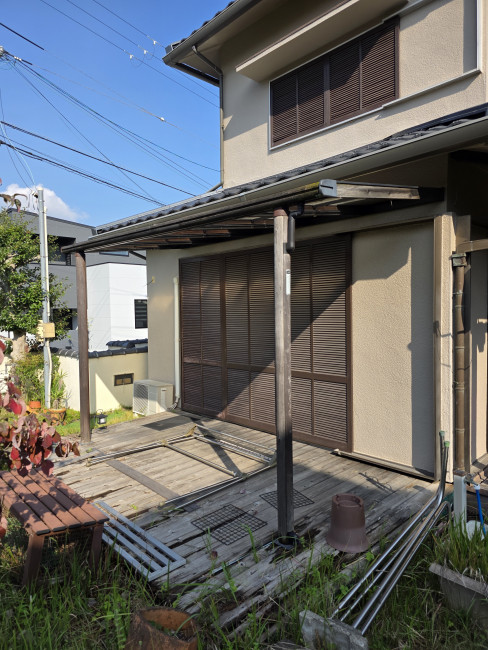 週に一度ほど帰宅される別宅をお持ちのI様より、「お庭の木製ウッドデッキとテラス屋根が古くなってきて、倒壊の恐れもあり危ないので撤去してほしい」とご相談をいただきました。お手入れが難しい別宅だからこそ、管理の負担を減らし、安全な状態にしたいというご要望でした。