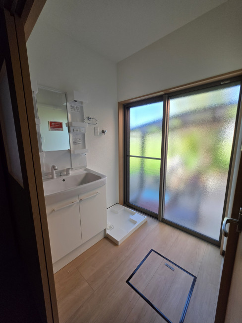 敷地に余裕がない長屋でしたが、床下に新たに配管を通し直すことで下水への切り替えを実現。さらに、今までなかった洗濯機置き場や洗面化粧台を新設し、生活に欠かせない設備を整えました。配管は点検が出来るように床下点検口を何カ所か設けました。