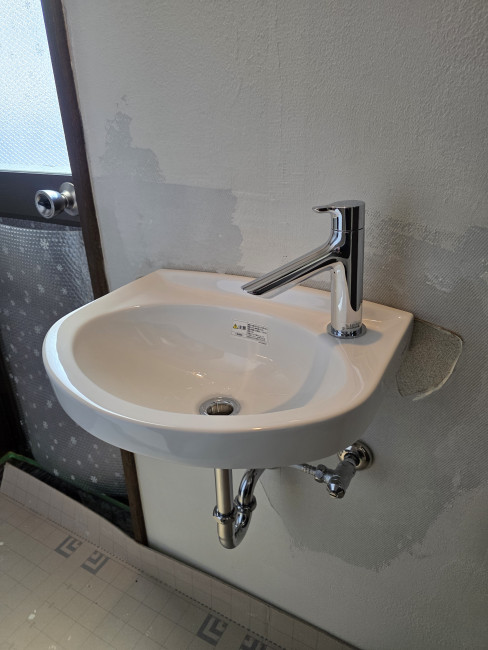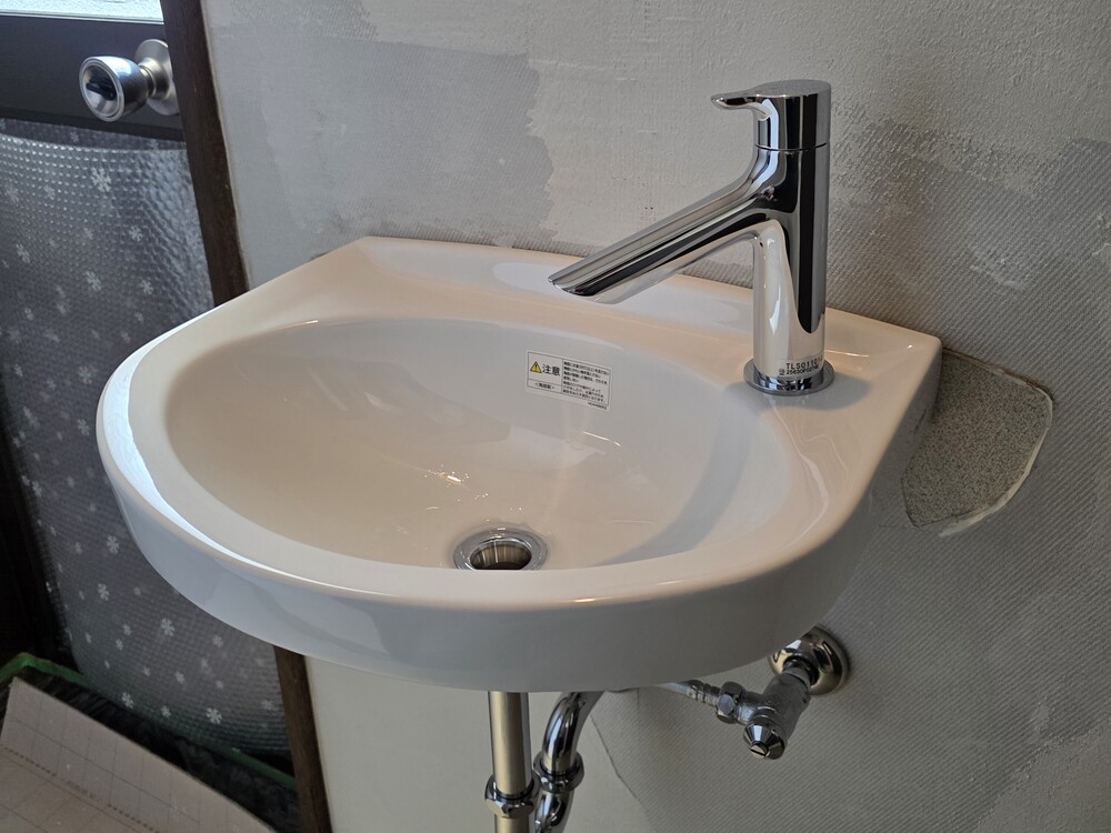 | 使用部材 | TOTO:壁掛手洗器(L30D)・立水栓、Panasonic:LEDブラケットライト |