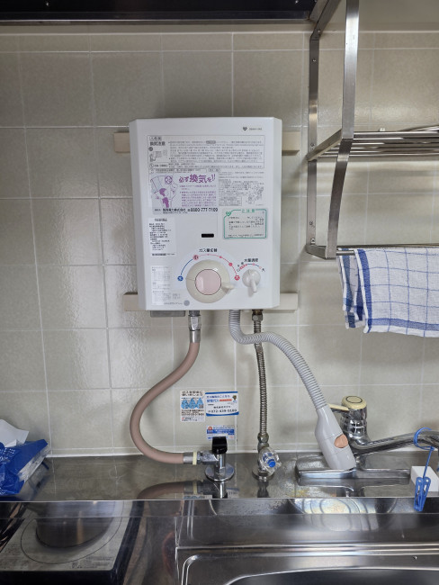 以前、弊社でリフォームを担当させていただいたお客様より、「実家の母が住んでいる公団住宅で、瞬間湯沸器が壊れて困っている」とご連絡をいただきました。毎日の炊事で使うお湯が止まってしまうのは大変不便なため、迅速に現地へ向かい、取替工事を行うことになりました。