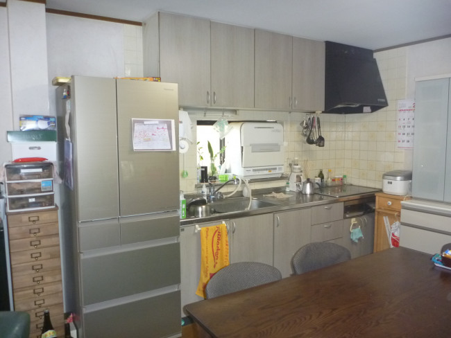 長年大切に使われてきたキッチン。ワークトップ上の据え置き型食洗機が窓上のスペースを占領しておりました。