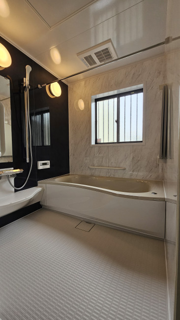 広々とした1618サイズのトクラス「エブリィ」へ。人造大理石の質感が美しく、毎日の入浴が楽しみな空間になりました!