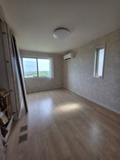 熊取町で中古物件をご購入されたH様より、「赤ちゃんが過ごす2階の部屋を明るく、安全にしたい」とご相談をいただきました。既存の壁紙の柄を一新したいというご希望と、フローリングでの転倒による怪我を防止したいという親心に寄り添ったプランをご提案しました。