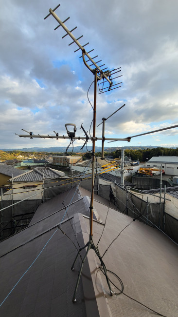 足場を組んで高所のチェックを行ったところ、テレビアンテナに激しい錆が回っているのを発見。「今なら足場があるので安価に交換できますよ」とお伝えしたところ、快諾いただき新品へと交換いたしました。台風などで倒壊するリスクを未然に防ぐことができ、大変お喜びいただけました。