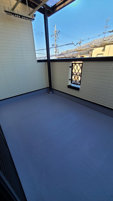 外壁塗装の足場を組む際、どうしてもカーポートの屋根パネル(波板)の脱着が必要になります。そこで、この機会に波板を外すので新品に張替のご提案し綺麗にさせていただきました。また、ベランダの防水工事も同時に行い、水漏れの侵入経路を完全にシャットアウトしています。